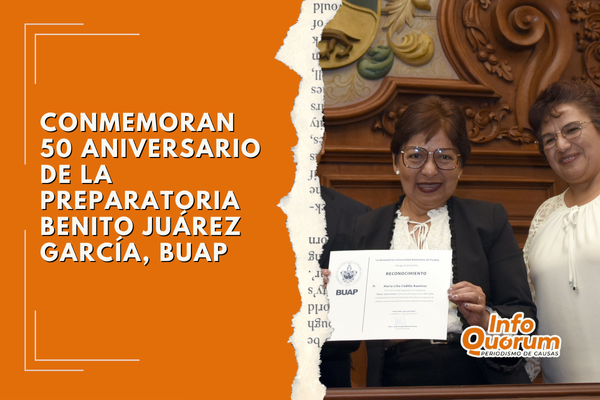 Rectora Lilia Cedillo recibe reconocimiento por el 50 aniversario de la Preparatoria Benito Juárez