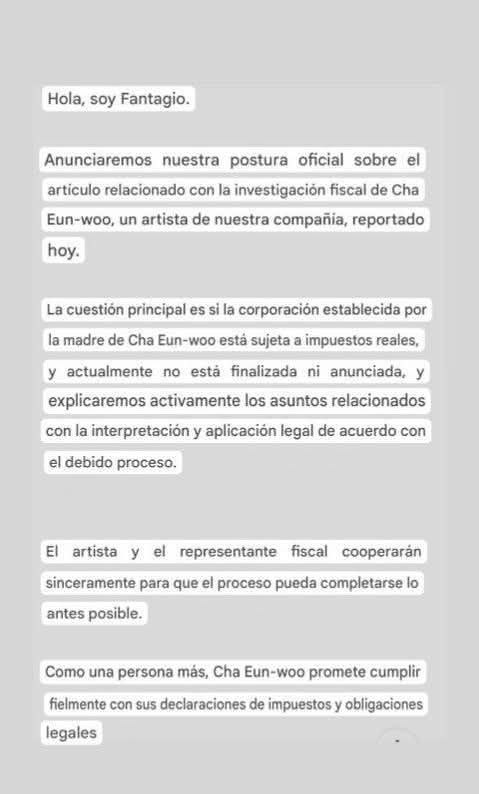 La agencia del artista, Fantagio, emitió un comunicado oficial explicando que el asunto central es determinar si dicha empresa califica como una entidad tributaria sustancial, proceso que aún no ha sido definido de manera final. La agencia aseguró que los representantes fiscales están cooperando plenamente para resolver el trámite lo antes posible.