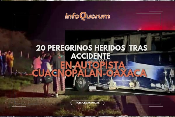 20 peregrinos heridos tras impacto de camión con autobús en autopista Cuacnopalan-Oaxaca