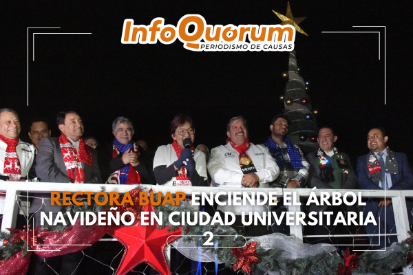 Rectora Lilia Cedillo presente en el encendido del Árbol Navideño en Ciudad Universitaria 2 BUAP