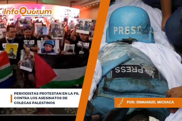 Periodistas protestan en la FIL contra los asesinatos de colegas palestinos