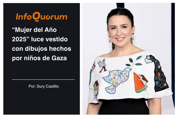 “Mujer del Año 2025” luce vestido con dibujos hechos por niños de Gaza