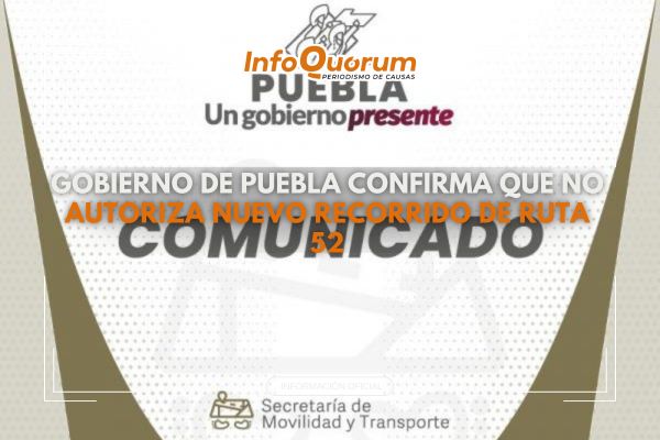 Gobierno de Puebla confirma que no autoriza nuevo recorrido en la ruta 52
