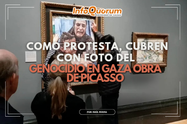 Como protesta, cubren con foto del genocidio en Gaza obra de Picasso